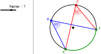• Show that an inscribed angle subtended by a semicircle is always equal to 90 degrees