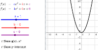 • Show how the parameters in \( f(x)=ax^2+bx+c \) are related to the characteristics of the corresponding graph