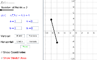 • Enter values for \( a,b,h,k \) and click buttons to watch the individual transformations of \( g(x)=af(b(x−h))+k \) separately