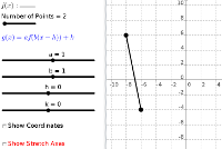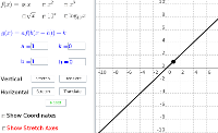 • Use sliders to show how the graph of \( g(x)=af(b(x−h))+k \) is related to the graph of \( f(x) \)